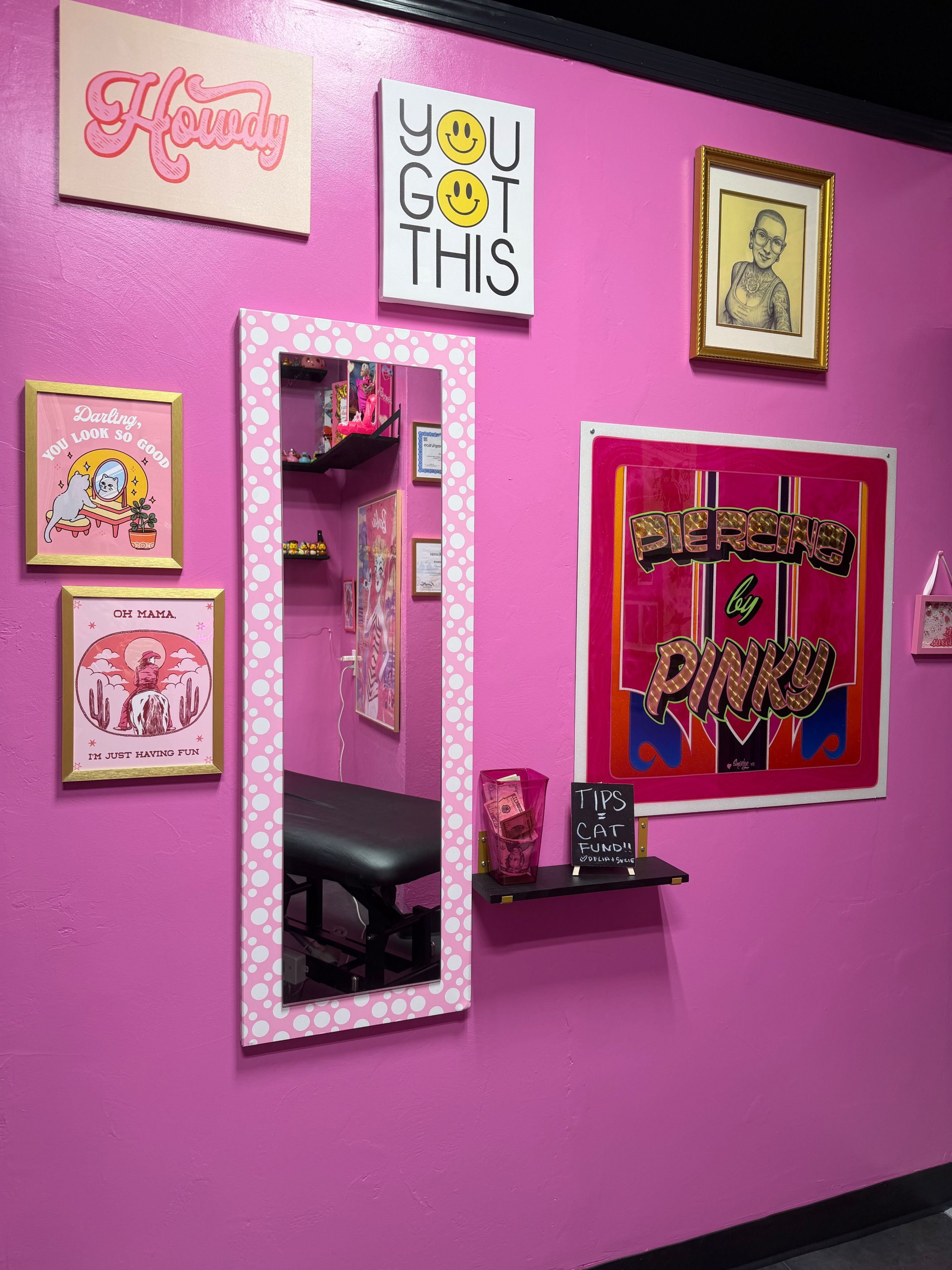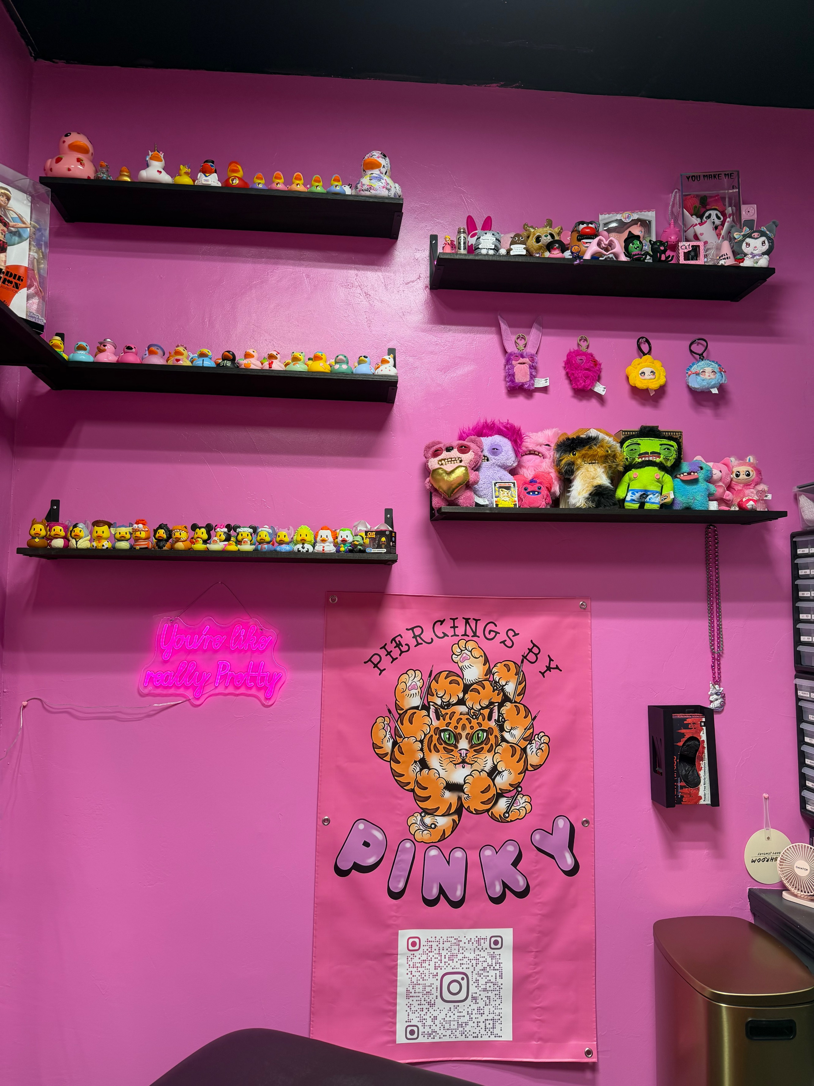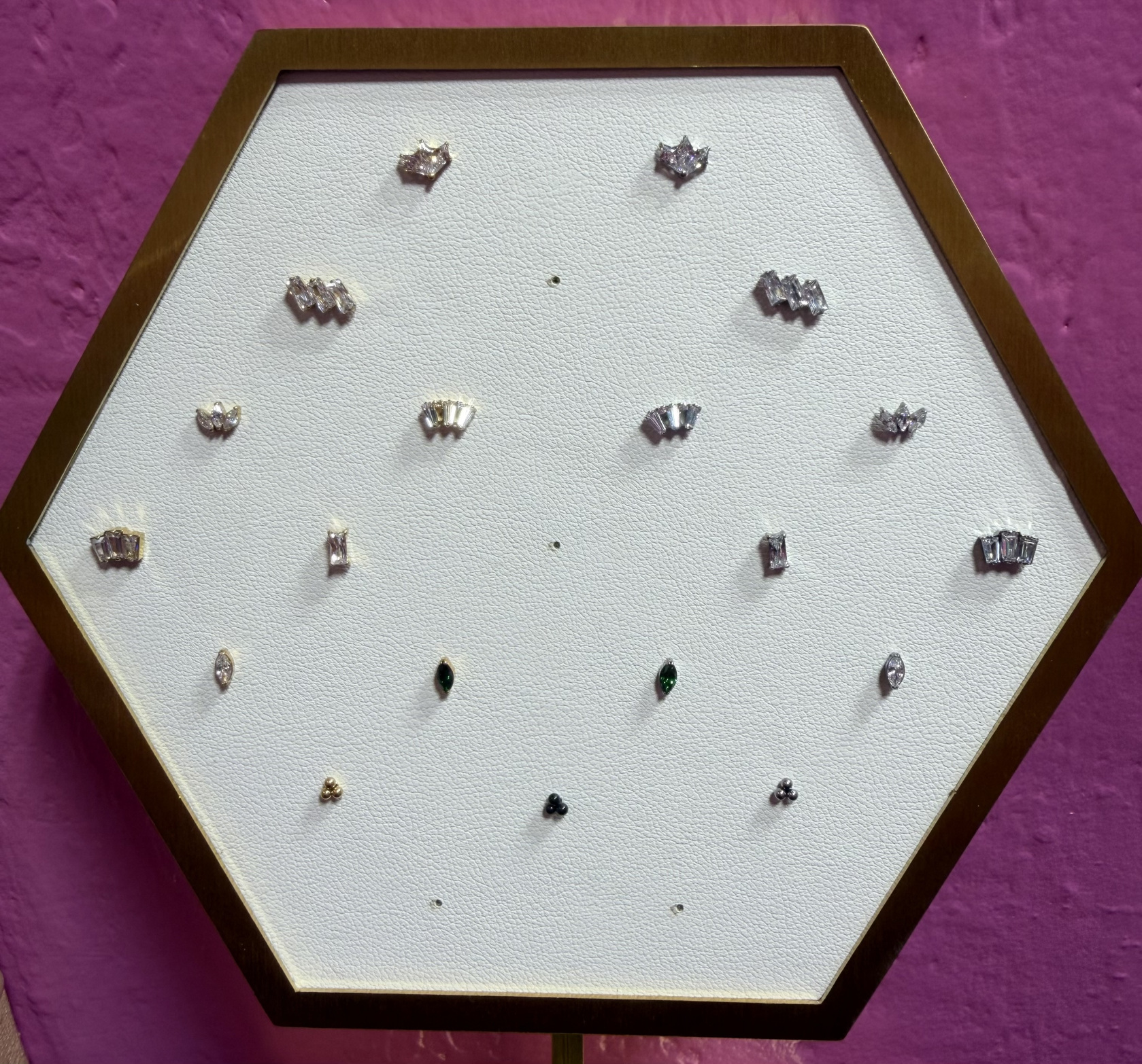 At Piercings by Pinky, we prioritize your safety and style. Your licensed piercer uses sterile techniques to ensure a healthy piercing experience. Choose from a wide range of premium body jewelry designed to express your individuality and enhance your body piercings.